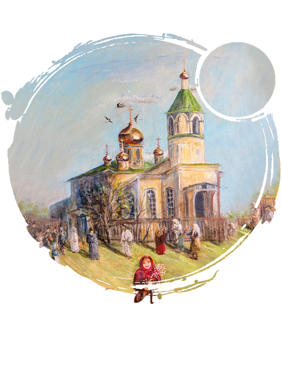 В тёплое время — водосвятные молебны у стен храма, освящение пасхальной снеди и крещенской воды.